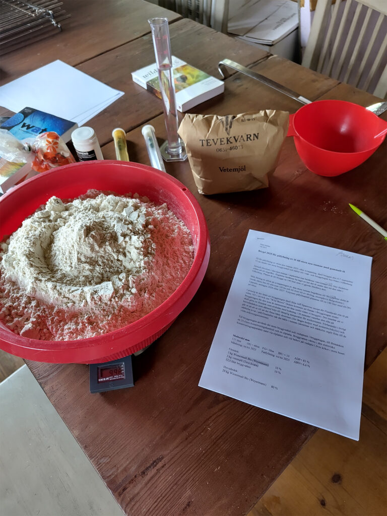 Här är några bilder från den första dagens bryggning av nytt öl. En förutsättning för öl är förstås att det finns malt och den har vägts upp och malts dagen innan av Peter Hultén, Olof Hultén och Charly Hultén.